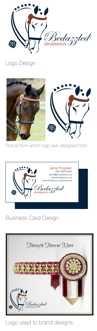 The final product is a horse head logo with a stamp vector to the left and the name to the right. All these elements are able to be used separately or together. To see her work visit: www.browband.co.za
