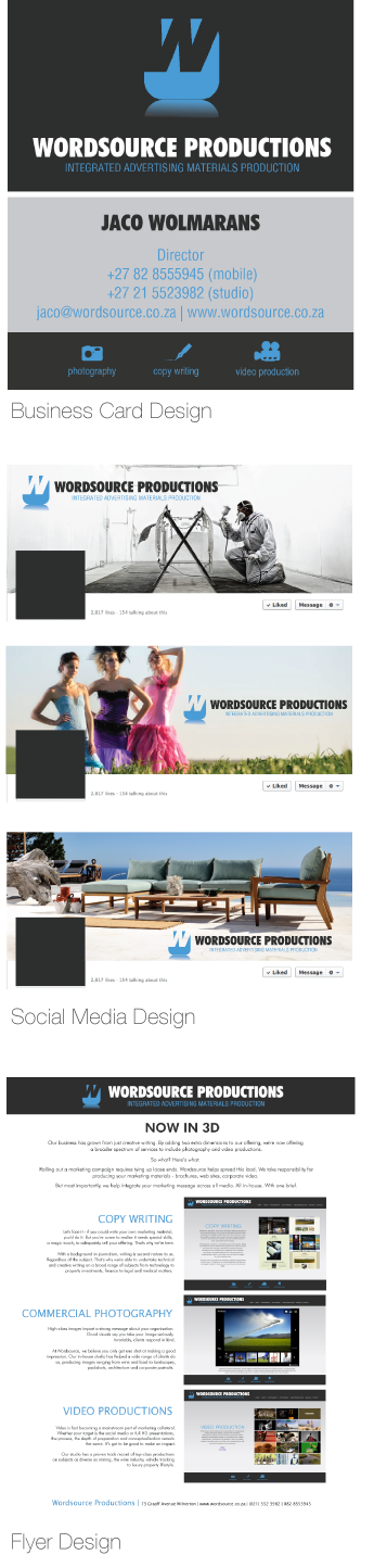 Wordsource Productions is a copywriting, photography and videography company based in Cape town. I have designed their website as well as designed the photography course, flyer and social media material.